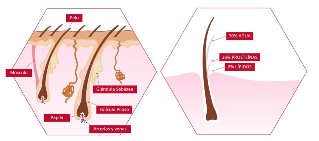 Los ácidos grasos saturados e insaturados constituyen el 85 % del contenido total de lípidos del cabello y se encuentran en la cutícula y la membrana celular cortical. Aunque estos lípidos solo representan entre el 2 % y el 6 % del peso total del cabello, desempeñan un papel crucial para mantenerlo sano, influyendo en su brillo, textura, manejabilidad y fuerza.