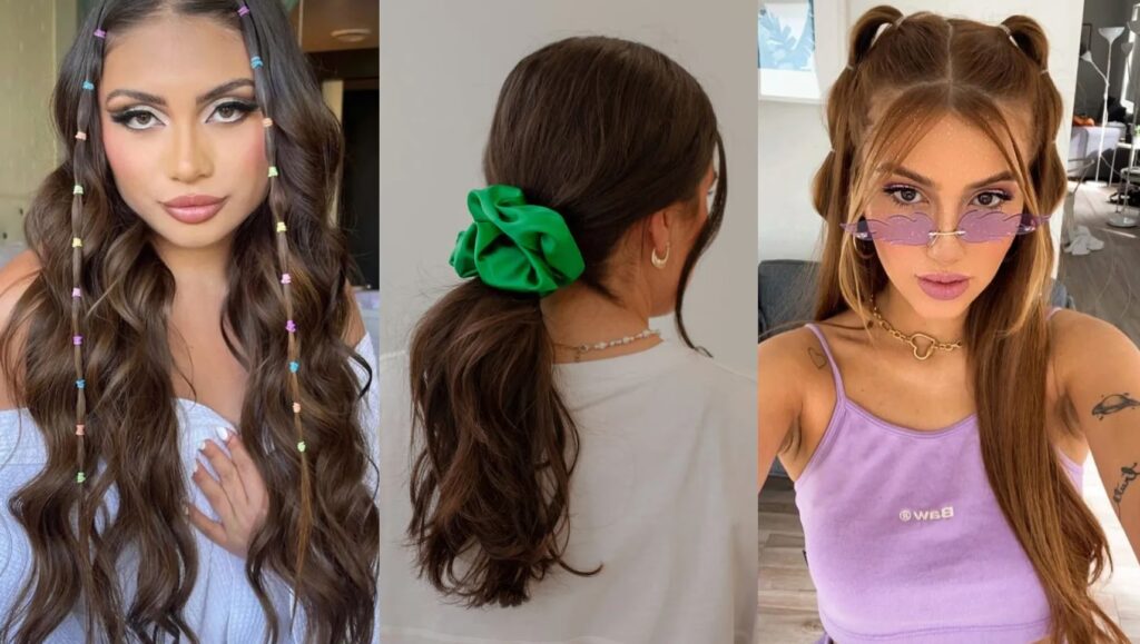 - Accesorios: Los accesorios son tus mejores aliados. Lazos, scrunchies de seda, pañuelos, diademas, clips decorativos o incluso horquillas con perlas pueden transformar una coleta simple en algo espectacular.