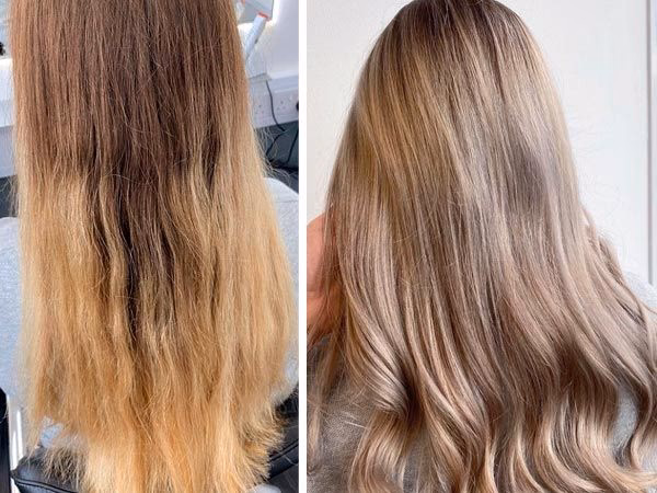 La decoloración y matización a rubio platino es un proceso exigente para el cabello, por lo que es crucial cuidarlo adecuadamente después. Utiliza productos específicos para cabello decolorado, como el champú y la mascarilla Brilliant Blondexx con Bond Protect, diseñados para fortalecer y espesar el cabello. Además, limita el uso de herramientas de calor tanto como sea posible, ya que el calor puede dañar aún más el cabello decolorado. Si necesitas usarlas, aplica siempre un protector térmico y mantén la temperatura lo más baja posible.