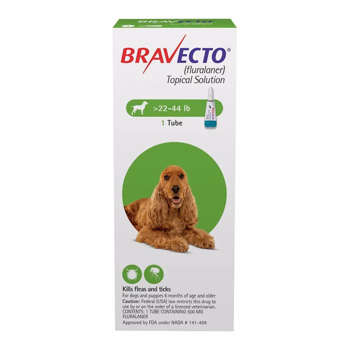 - Bravecto (fluralaner topical solution) para Perros: Las reacciones adversas más comúnmente reportadas incluyen vómitos, caída del pelo, diarrea, letargo, disminución del apetito y dermatitis húmeda/erupción.
