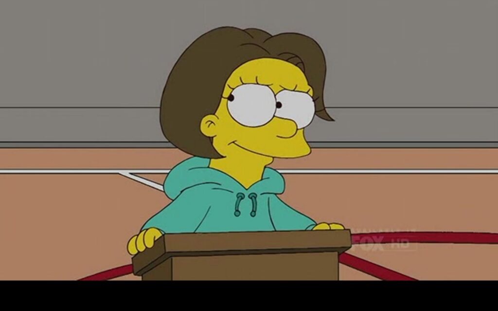Es en este momento que Lisa decide exponer la hipocresía. Señala el sesgo de los jueces hacia las morenas, y la única jueza femenina en el panel admite orgullosamente su creencia en el estereotipo de la rubia. Lisa, con su característica elocuencia, insta a la audiencia a no seguir ciegamente los estereotipos, ya que todos tienen excepciones. Sin embargo, su argumento es inmediatamente socavado de una manera hilarante y muy propia de Los Simpson, cuando el Abuelo Simpson estrella su coche contra la pared del gimnasio de la escuela donde se celebra el debate.