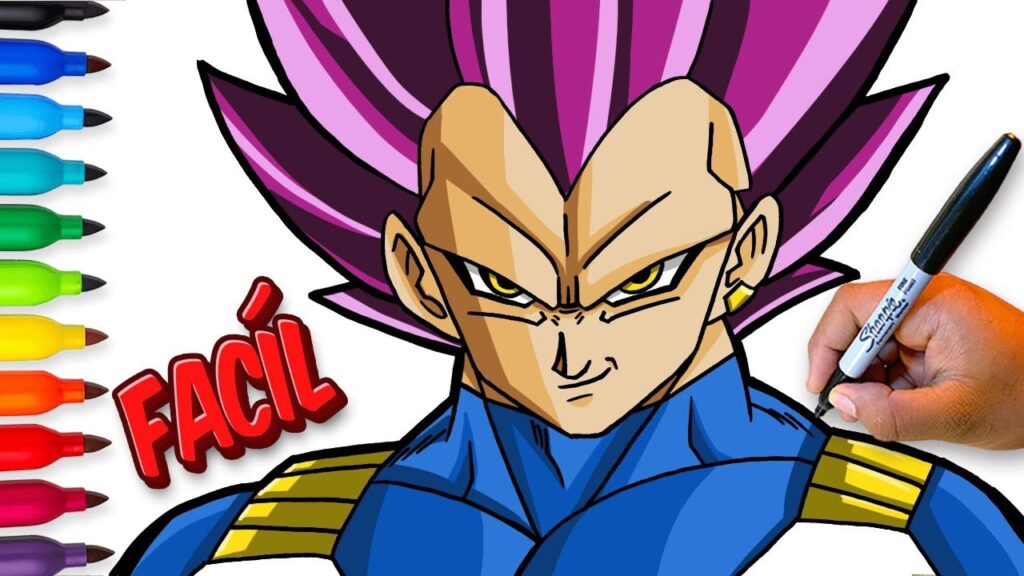 Es importante aclarar que Vegeta no alcanza el Ultra Instinto; esa es una técnica de Goku. Vegeta desarrolla su propia técnica llamada Ultra Ego. Para dibujar a Vegeta en Ultra Ego, deberías enfocarte en su forma base o Super Saiyajin Blue, pero lo más distintivo es el aura púrpura/magenta que lo rodea, junto con una expresión más agresiva y marcas oscuras alrededor de sus ojos, similares a las del Mega Instinto de Goku o el Instinto Superior, pero con su propia estética y color.