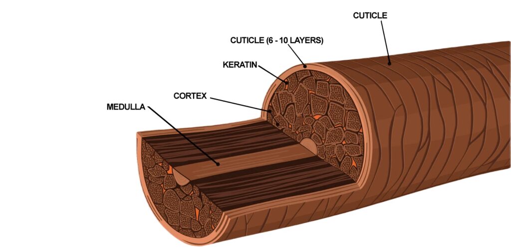 Para comprender mejor la magnitud del daño que sufre el cabello con efecto chicle, es útil compararlo con las características de un cabello sano: