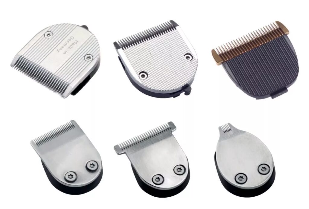 - Cuchillas Finas (35 mm): Con una medida de 35 mm, estas cuchillas son el aliado perfecto para los detalles más delicados. Son comúnmente encontradas en las máquinas “trimmers” o delineadoras. Su diseño delgado y sus dientes muy pequeños permiten limpiar bordes, crear líneas artísticas en el cabello o definir la barba. Es crucial usarlas solo en zonas pequeñas y con poco volumen de cabello para evitar dañarlas.