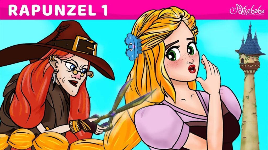 En el cuento original de los Hermanos Grimm, la narrativa de Rapunzel es más sombría y directa. La joven es entregada a una bruja malvada, no por robo, sino como pago por unas lechugas codiciadas por su madre embarazada. Esta bruja, a quien Rapunzel conoce como su "madre", la encierra en una torre sin puertas ni escaleras, y la única forma de acceso es a través de su larguísima trenza dorada, que la bruja usa como escalera al decir: "Rapunzel, Rapunzel, deja caer tu trenza".