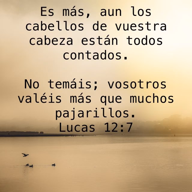 - Lucas 12:7: “Más aun los cabellos de vuestra cabeza están todos contados. No temáis, pues; más valéis vosotros que muchos pajarillos.”