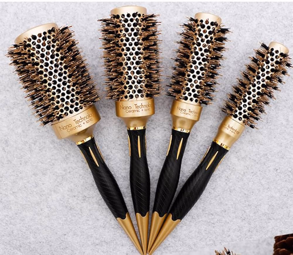 - Cerdas Mixtas: Muchos cepillos redondos tienen cerdas mixtas (nylon y jabalí) para un mejor agarre y brillo.