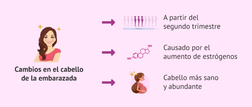 Durante el embarazo, los niveles de estrógeno y progesterona se disparan. Si bien el estrógeno a menudo prolonga la fase de crecimiento del cabello (anágena) para muchas mujeres, lo que resulta en un cabello más denso y brillante, esta no es la regla para todas. Algunas mujeres pueden experimentar el efecto contrario, o bien, la caída se hace más evidente en el posparto, cuando los niveles de estrógeno caen abruptamente, llevando a una fase de reposo (telógena) masiva y, por ende, a una mayor pérdida de cabello. Sin embargo, en algunas, los cambios hormonales pueden desequilibrar el ciclo capilar incluso durante la gestación.