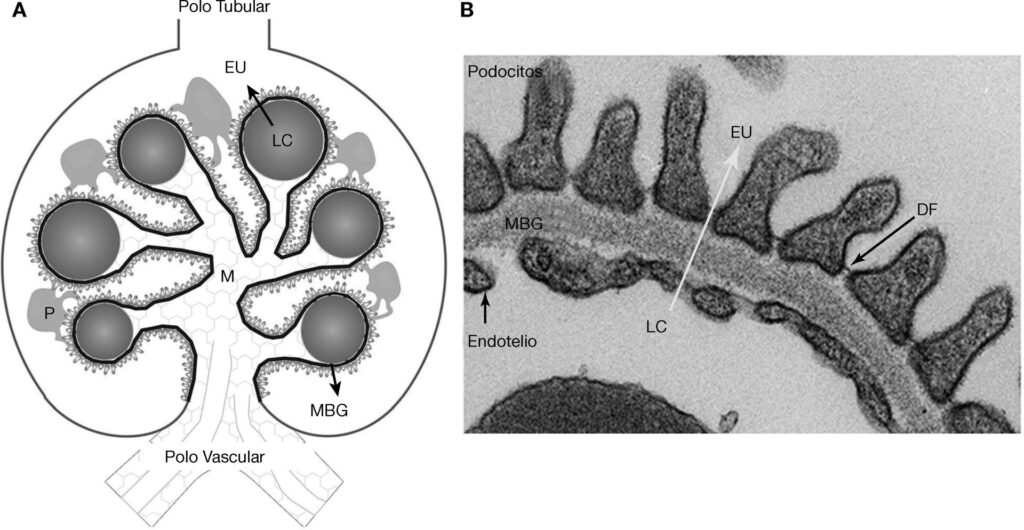 La membrana basal glomerular (MBG) es una capa especializada de tejido dentro del glomérulo renal. Su función principal es actuar como una barrera de filtración, permitiendo el paso de agua y pequeñas moléculas de desecho, mientras retiene proteínas esenciales y células sanguíneas en el torrente sanguíneo. Cuando esta membrana se engrosa, su capacidad para filtrar adecuadamente se ve comprometida.