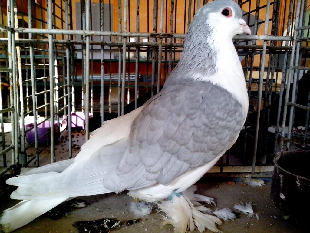 Otros detalles anatómicos de las palomas incluyen sus ojos, que en los adultos son de color naranja o rojo anaranjado, mientras que los juveniles (menores de seis a ocho meses) tienen ojos de color marrón medio o marrón grisáceo. Sus patas y pies varían de rojo a rosa o negro grisáceo, con garras generalmente negras grisáceas, aunque pueden ser blancas en algunas palomas. Algunas incluso presentan “medias”, que son plumas en sus patas y pies. El cere, la cubierta carnosa en la parte superior del pico, es grisáceo en aves jóvenes y blanco en adultos, con tonos rosados en aves albinas.