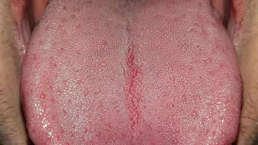 • Sensación de Arcadas o Cosquilleo: Si las papilas se vuelven extremadamente largas, pueden llegar a tocar el paladar blando (el techo de la boca) durante la deglución, provocando una incómoda sensación de cosquilleo o, en casos más severos, reflejo de arcadas.