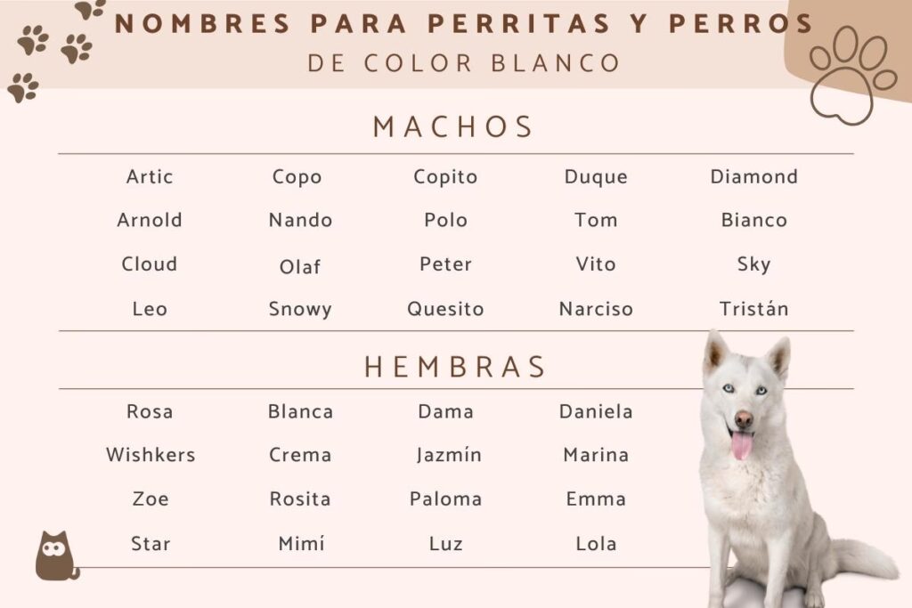 - Tamaño y Raza: Aunque el color es el enfoque principal, el tamaño y la raza también pueden influir. Un nombre delicado puede ser perfecto para una chihuahua blanca, mientras que uno más imponente podría ajustarse a una gran danés blanca.