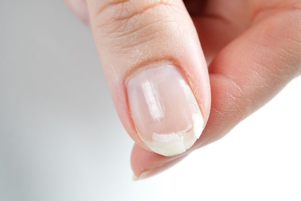 - Uña laminada (onicosquisis): Las capas de la uña se separan en láminas.