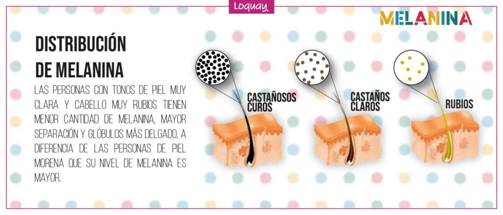 | Distribución | Melanosomas ovalados | Melanosomas esféricos |
