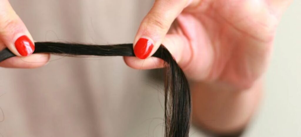 Si se estira 1/3 está bien de hidratación y proteínas. Si se estira mucho como le ocurre en el cabello deco en la mitad, necesita proteínas y si estiras y se rompe también. Si no se estira nada necesita hidratar. Si necesitas las dos cosas, en seco se rompe si tiras y en mojado se estira más. El Test del Secado: