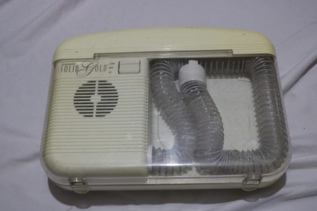 Este artilugio parecía un tubo colosal, inspirado en la tecnología de las aspiradoras. El aparato, de gran tamaño y con asiento, soplaba aire caliente sobre el cabello, y no era portátil ni mucho menos. Desde luego, no era práctico ni cómodo para una mujer, ni mucho menos seguro.