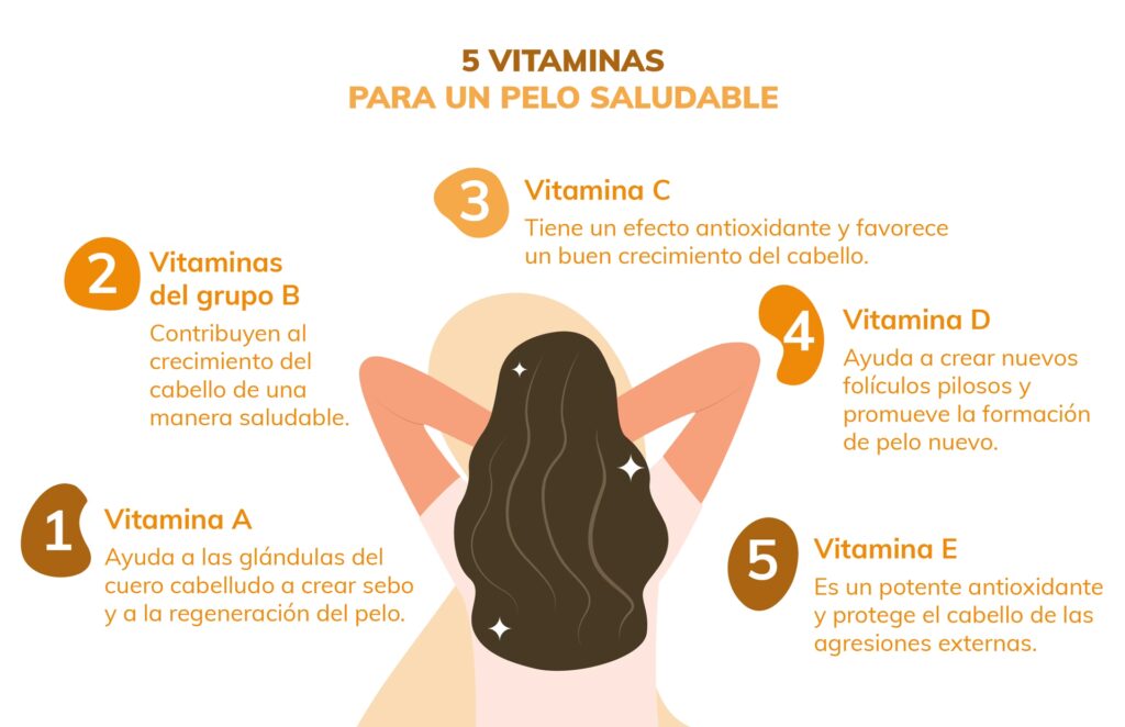 | Vitamina E | Aceites vegetales (girasol, almendra), aguacate, espinacas, almendras | Antioxidante, mejora la circulación en el cuero cabelludo. |